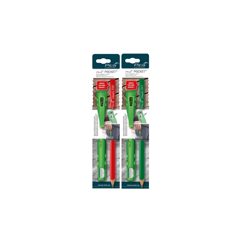 Kit composto da matita + fodero, il quale trattiene tutte le matite in legno, ovale, triangolare o a sei lati. Permette l'utilizzo delle matite fino a lunghezza molto ridotta. Temperino integrato per una affilatura perfetta. Clip di sicurezza per fissaggio alla tasca. Modello = tipo matita