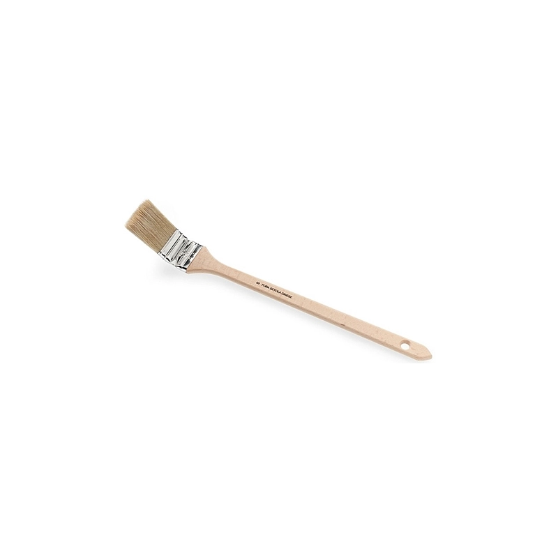 Pennellesse curve in setola bionda e forte mix. Manico in legno, ghiera in banda stagnata. Per vernici a solvente e idropitture. Modello = larghezza mm