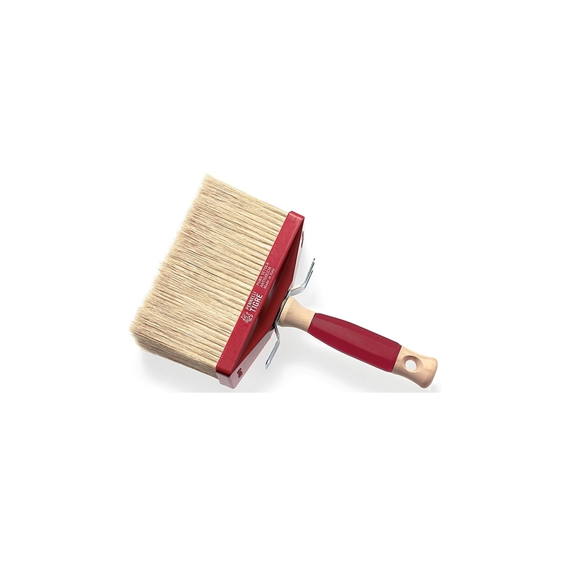 In pura setola bionda con ciuffi interni anti-goccia. Con assicella plastica e manico legno con gomma antiscivolo. Modello = dimensioni mm.