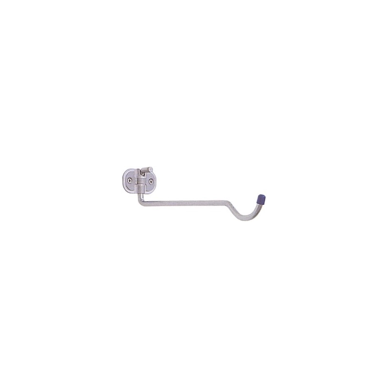 In acciaio zincato tondo pieno diametro mm 9. Con posizione di riposo a 90 gradi e blocco di sicurezza. Sporgenza mm 320