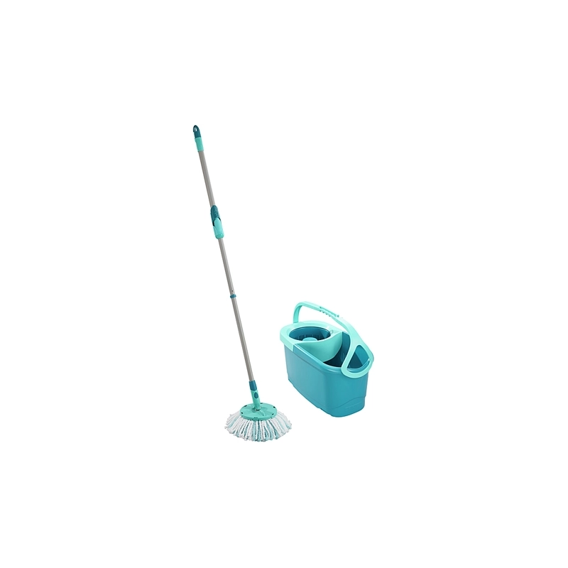 Set composto da 1 lavapavimenti a frange Micro Duo e un secchio. Manico telescopico con meccanismo brevettato per una comoda strizzatura senza dover immergere le mani nell'acqua sporca. Facile pulizia grazie allo snodo flessibile a 360 gradi.