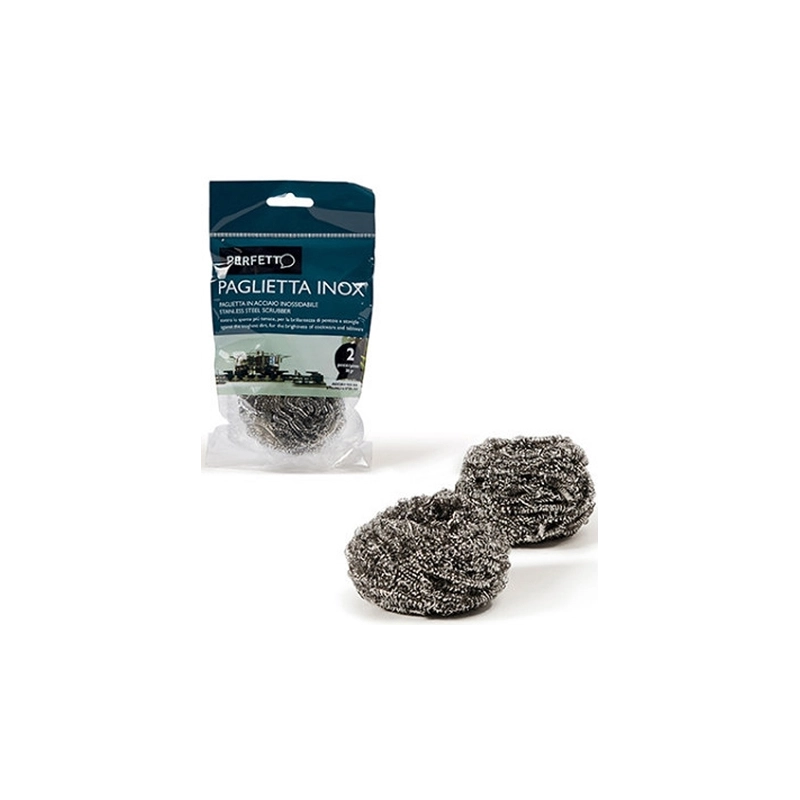Spugna in acciaio inox 18/8. Non arrugginisce. Peso 30 gr. Confezione da 2 pezzi.