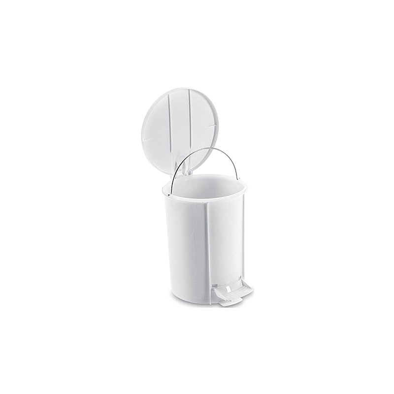 Pattumiera a pedale in materiale plastico. Dimensioni cm (diametro x h) 22x28. Volume l 6. Colore bianco