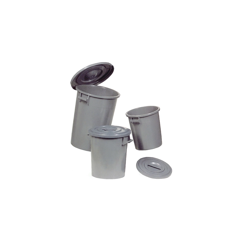 Bidoni industriali in polietilene, completi di coperchio. Modello = volume l/colore/altezza cm/diametro cm