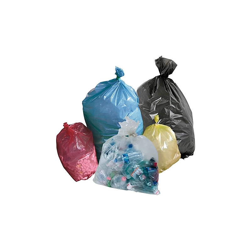 Sacchi con legaccio di chiusura. Spessore 60 micron. Dimensioni 90x120 cm. In rotoli da 10 pz. Modello = colore