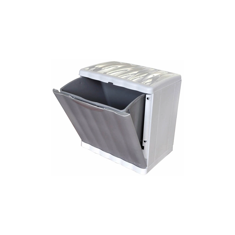 Pattumiera con secchio interno da lt 20 ed apertura basculante. Sistema modulare con possibilita' di sovrapposizione fino a 4 elementi. Dimensioni 40x30x40h cm. Colore grigio. Incluse nella confezione le etichette adesive con i simboli della raccolta differenziata.