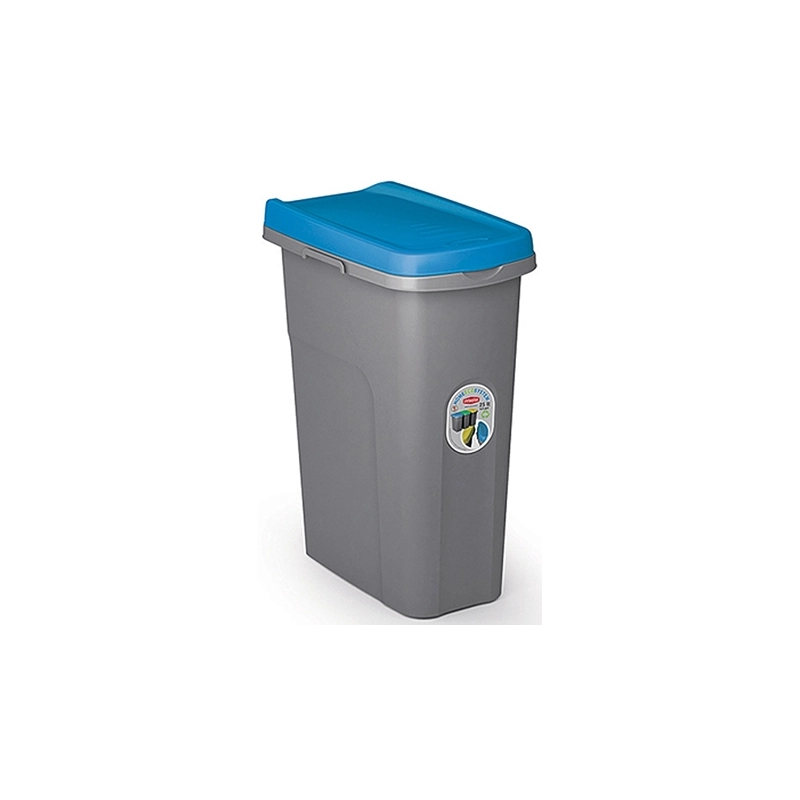 Pattumiera modulare salvaspazio per raccolta differenziata, con sistema di aggancio laterale. Dotata di anello fermasacco e coperchio antipioggia. Capacita' 25 lt. Dimensioni 39x24 cm. Altezza 51 cm. Modello = colore