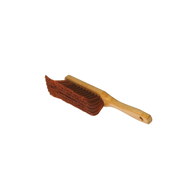 Con setole curve in fibra sintetica. Lunghezza 15 cm. Grande capacita' di raccolta grazie alla forma ergonomica.