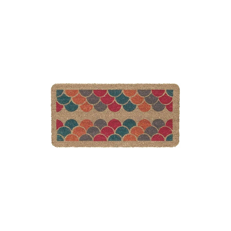 Zerbino in cocco con fondo in vinile. Stampa con colori a base acqua. Ottima resistenza del colore e brillantezza. Fantasie assortite. Modello = dimensioni cm