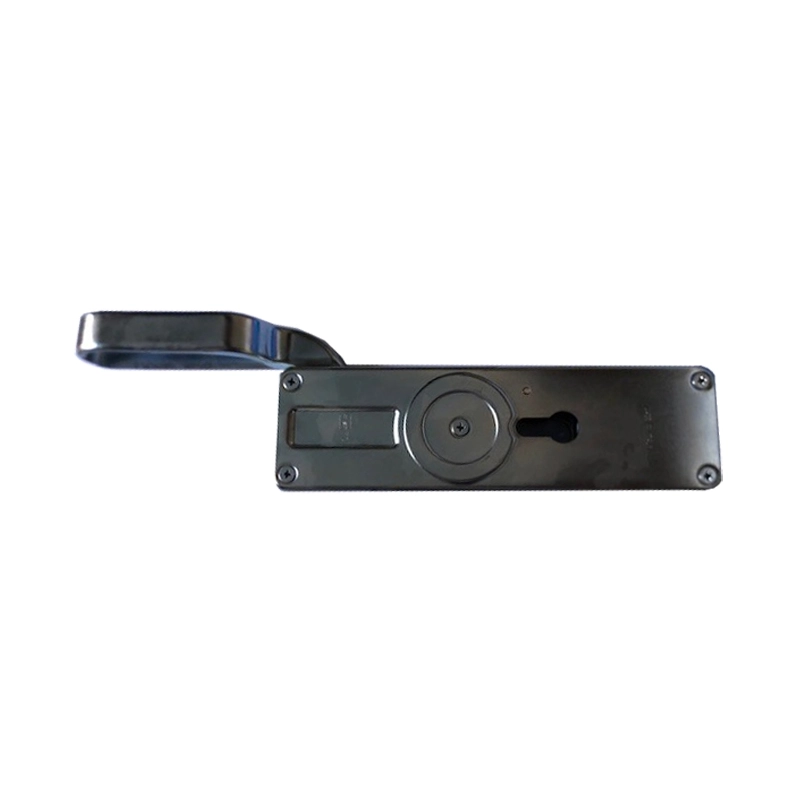 In acciaio zincato. Predisposto per cilindro. Dimensioni mm.240x70x25. Per aste da mm.30x10. Modello = dx o sx