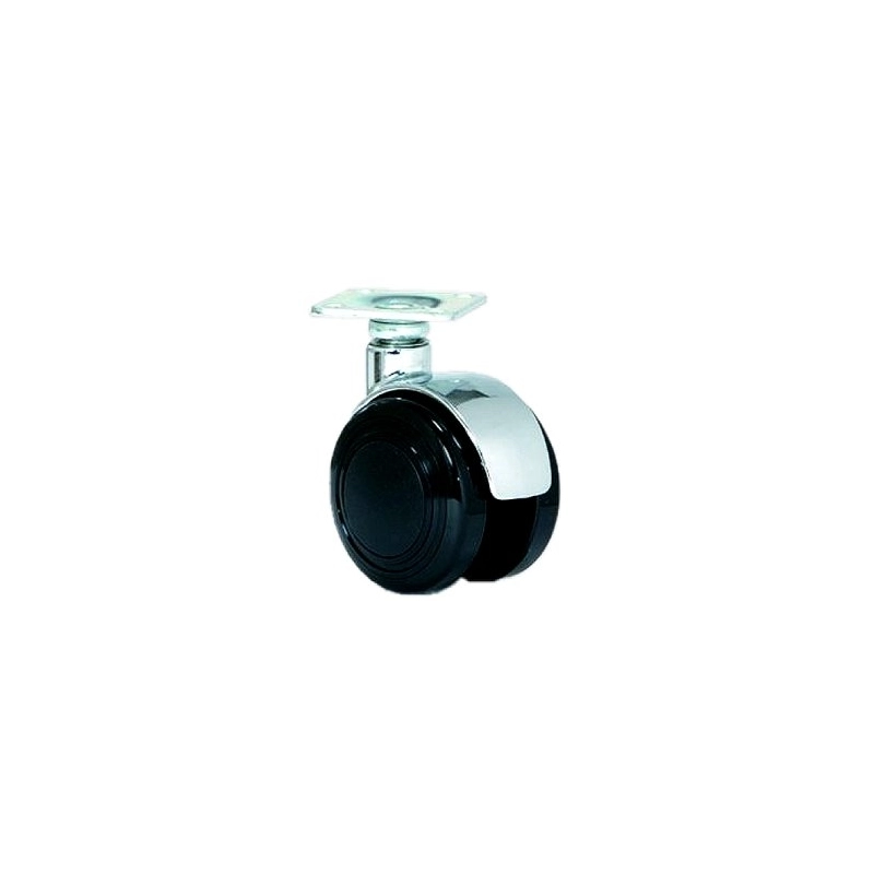 Supporto in lega di zama lucida. Ruota in poliammide 6 rivestita in poliuretano. Piastra dimensione mm 38x38, diametro mm 50. Portata kg 60
