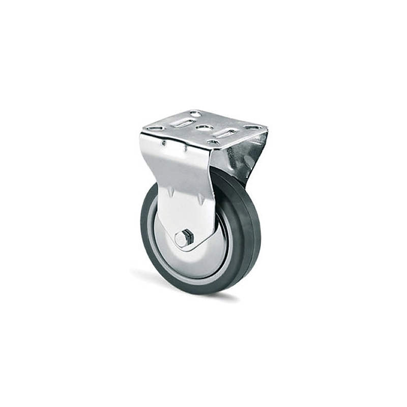 Supporto in acciaio zincato, ruota in gomma grigia. Modello = diametro mm./portata kg.