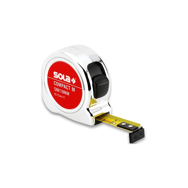 Flessometro cromato con terminale magnetico. Con freno. Nastro testato CE classe 2. Modello = larghezza mm/lunghezza m