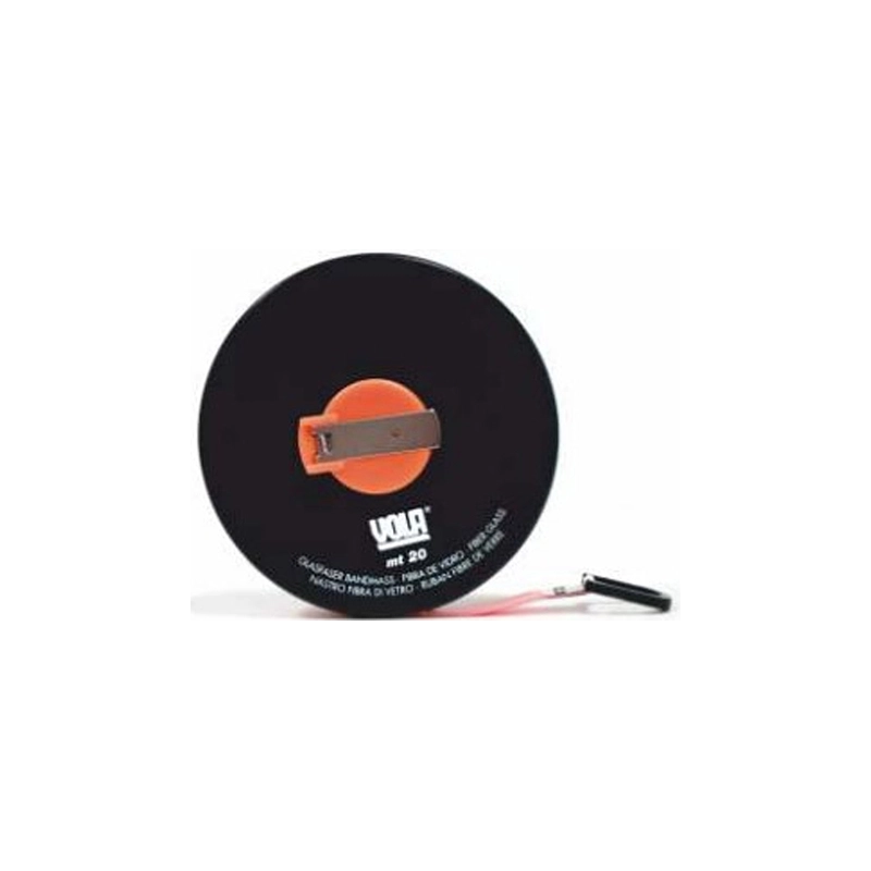Rotella metrica con scatola in materiale plastico (ABS) antiurto. Manovella di riavvolgimento del nastro pieghevole. Nastro in fibra di vetro. CLASSE III. Modello = lunghezza mt