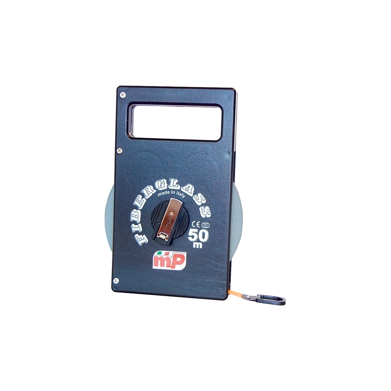Custodia in ABS con impugnatura. Corpo aperto per facilitarne il lavaggio. Nastro in fibra di vetro. Lunghezza m 50