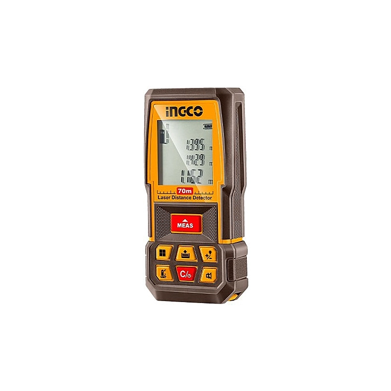 Misuratore laser. Portata 70 mt. Precisione +/- 2,00 mm. 635 nm. Funzioni: misurazione singola, continua, area, volume, pitagora e altezza. Display LCD. Funziona con 2 batterie AAA incluse.