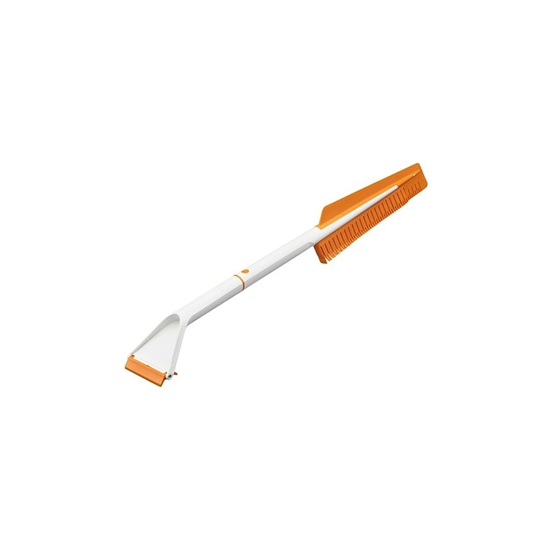 Raschietto a doppia lama combinato ad una spazzola con setole elastiche a 2 lati antigraffio. Struttura staccabile e facile da ricomporre. Con terminale basculante per adattatarsi alle curvature dei vetri. Lunghezza 670 mm.