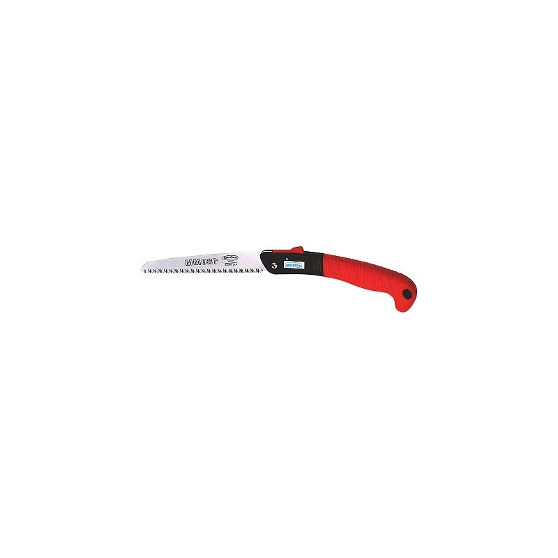 Con lama pieghevole diritta, cromata e temperata HRC 50-52, da mm.180. Chiusura a pulsante, manico anatomico in materiale plastico