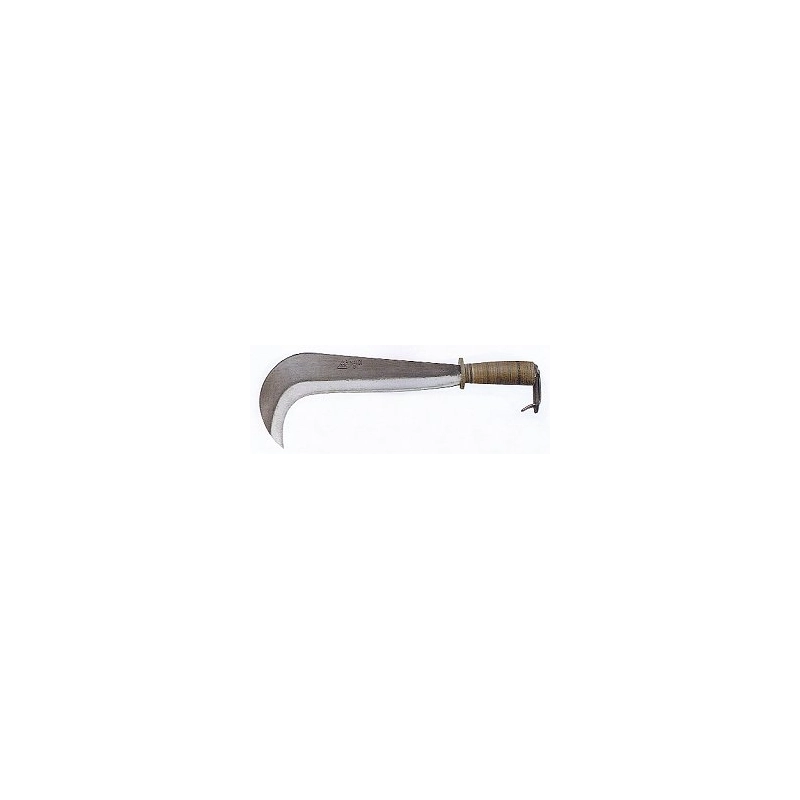 Con manico in cuoio e gancio. Modello = tipo (S = forgiata Krone - F = forgiata Rinaldi)/lunghezza lama cm