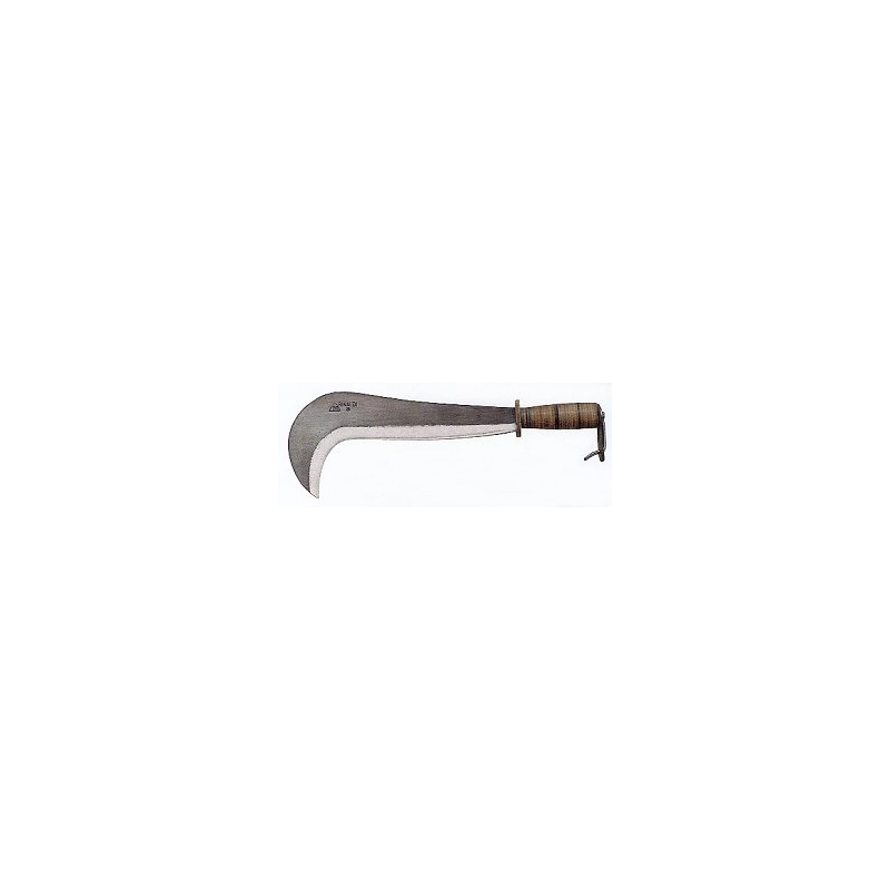 In acciaio forgiato. Manico in cuoio con gancio. Modello = lunghezza lama cm.