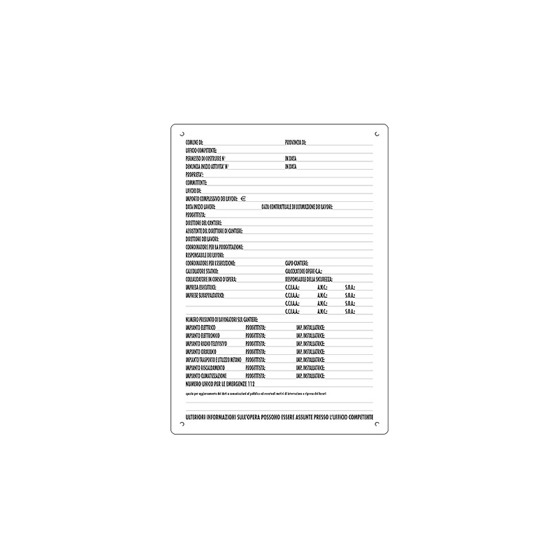 Cartello per concessioni edili. Articolo 1660. Materiale polionda. Modello = Dimensioni cm