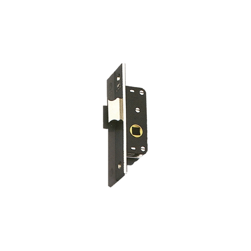 Scrocco reversibile comandato dalla maniglia con quadro da mm 8. Scatola in acciaio zincato e plastificato. Frontale da mm 16x160 in acciaio nichelato, entrata mm 15. Cilindro non in dotazione.