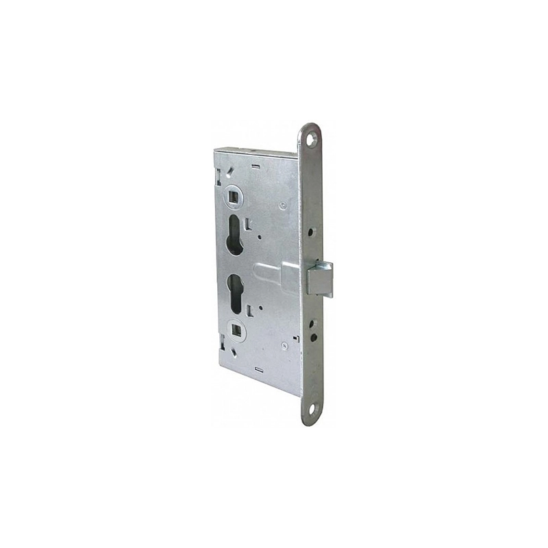 Serratura meccanica, solo scrocco con testata in acciaio inox. Frontale da 235x24 mm, spessore 3 mm. Quadro sdoppiato da 9 mm, entrata 65 mm, interasse 72 mm. Funzionamento interno con maniglione antipanico o chiave, esterno con maniglia o chiave (la chiave abilita e disabilita la maniglia e richiama lo scrocco).