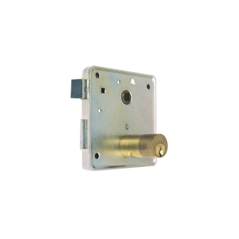 Con scrocco reversibile e catenaccio a due mandate, cilindro diametro mm 25 e sporgente mm 50. Dimensioni scatola mm 103x108x18. Entrata mm 55. Modello = tipo