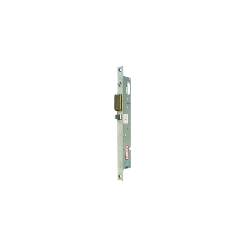 Zincata, con scrocco autobloccante. Dimensioni frontale mm.224x16. Entrata mm.15. Foro cilindro ovale. Modello = destra o sinistra