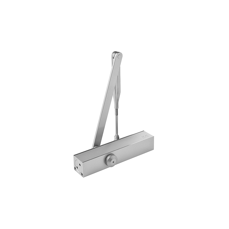 Velocita' di chiusura regolabile, completo di braccio con arresto. Larghezza max porta cm 110. Modello = finitura