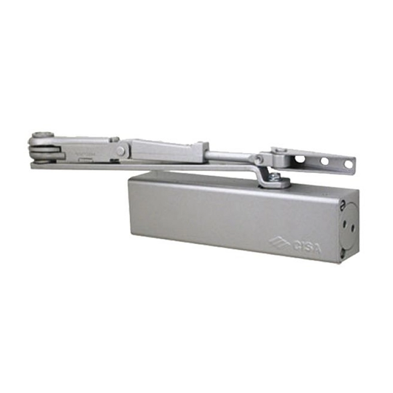 Corpo monoblocco in alluminio. Braccetto in acciaio con arresto regolabile. Valvola di regolazione con registro termostatico. Forza, velocita' di chiusura, potenza del colpo finale e posizione arresto porta regolabili. Larghezza max porta cm 110, peso kg 80. Modello = colore