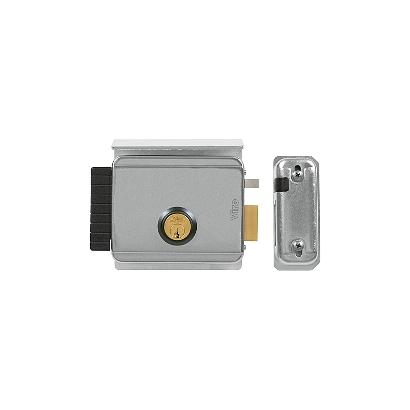 Serratura elettrica 12V CA con entrata regolabile da 50 a 80 mm. Cassa monoblocco in acciaio zincato. Scrocco e cilindro in ottone massiccio. Espulsore in acciaio nichelato. Modello = destra o sinistra