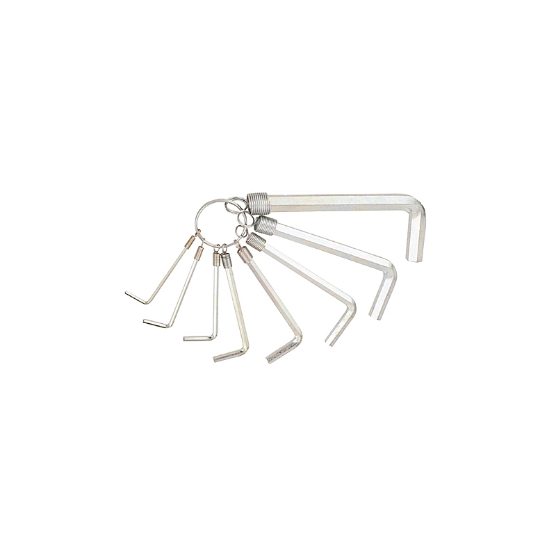 Serie 8 pezzi chiavi maschio esagonale. In acciaio al cromo-molibdeno, nichelato. Misure assortimento: 2 / 2, 5 / 3 / 4 / 5 / 6 / 8 / 10 mm