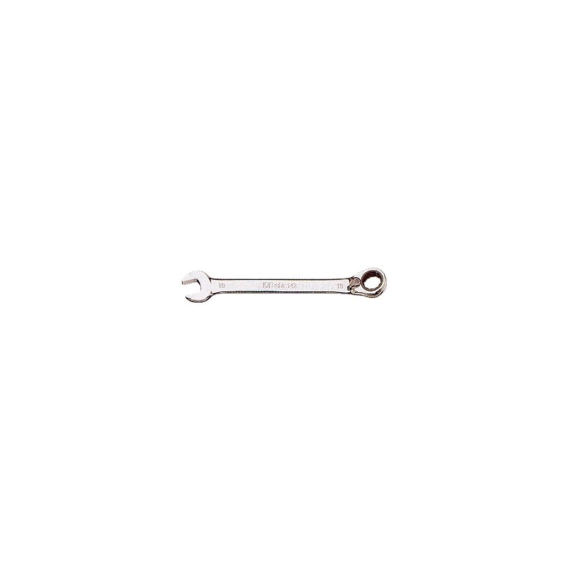 Chiave a forchetta e poligonale piegata a cricchetto reversibile. Modello = misura mm.