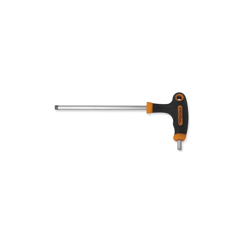 Chiave maschio esagonale con impugnatura bicomponente a T. In acciaio al cromo vanadio finitura cromata. Modello = misura mm