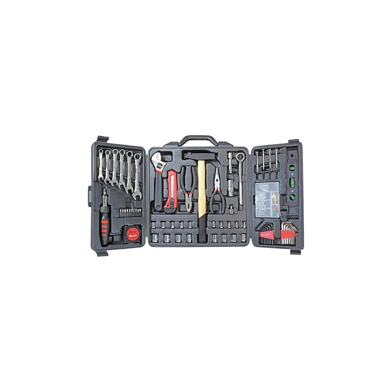 Assortimento di 160 pz. tra chiavi esagonali, pinze, cacciaviti, martello, cutter, chiavi a bussola attacco 1/4" e 3/8".