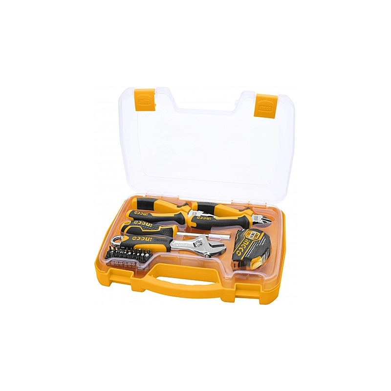 Valigetta contenente 25 utensili assortiti tra: 20 inserti assortiti, 1 pinza, 1 tronchese, 1 chiave a rullino, 1 flessometro e 1 cacciavite portainserti magnetico.