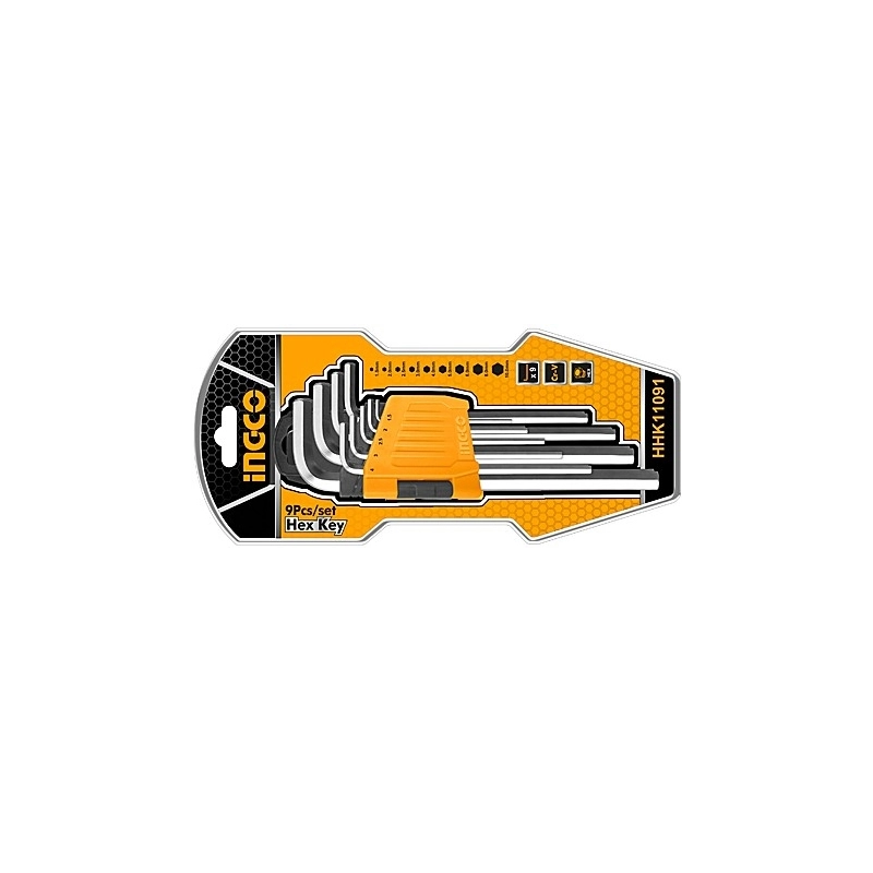 Serie 9 chiavi esagonali lunghe al cromo vanadio. Misure comprese tra 1,5 e 10 mm.