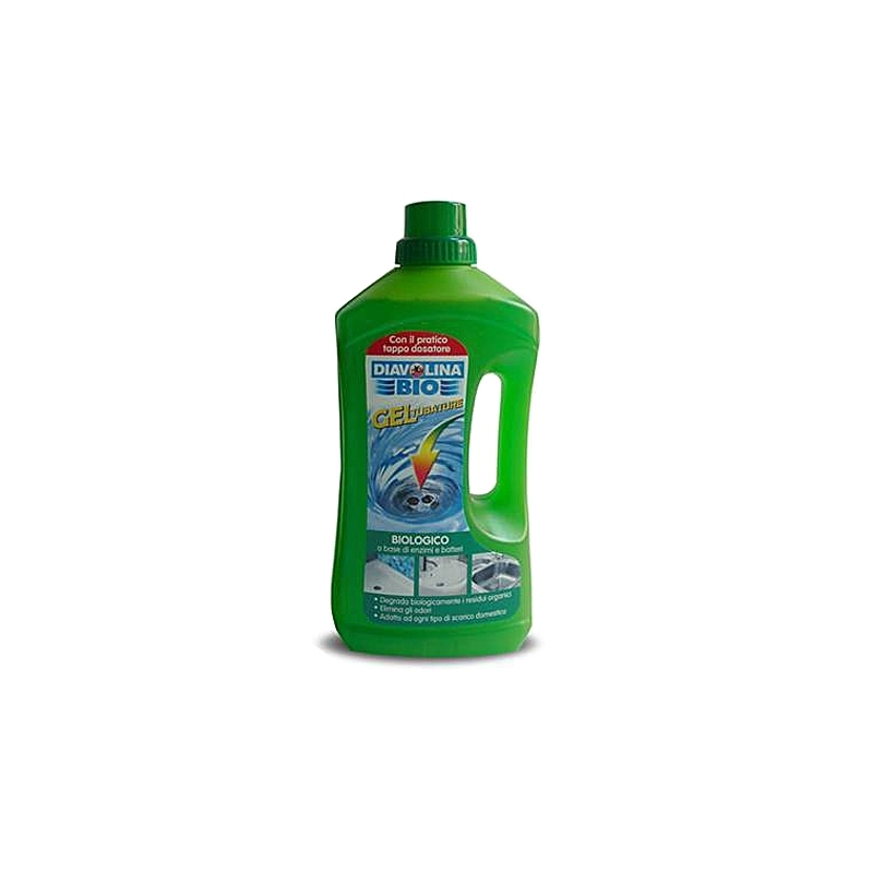 Diavolina Bio Gel Tubature e' un'emulsione a base di enzimi e batteri che rimuove biologicamente i residui organici dalle tubature prevenendo le ostruzioni. Ideale per docce e lavandini, disincrosta biologicamente qualsiasi tipo di tubatura, sopprimendo i cattivi odori. Adatto per ogni tipo di scarico domestico. Contenuto l 1