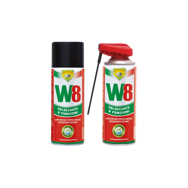 W8 Lubrificante spray biodegradabile otto funzioni con valvola erogatrice a 360 gradi: sbloccante, protettivo, lubrificante, idroespellente, anticongelante, sgrassante, dielettrico, anticorrosivo. Modello = contenuto ml