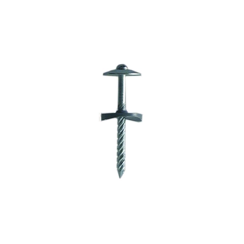 Chiodi zincati con filetto rullato e testa ad ombrello, completo di rondella in plastica. Diametro mm.4,3. Confezioni da ct.2. Modello = lunghezza mm.