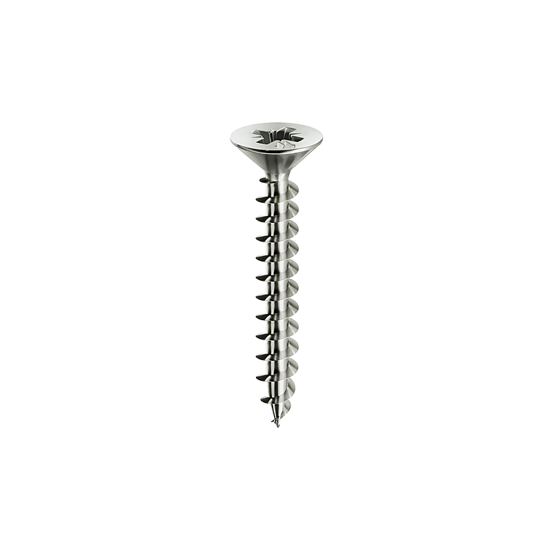 Viti in acciaio con trattamento lubrificante antifrizione. Testa svasata piana con cava a croce PZ. Modello = diametro mm/lunghezza mm/filettatura