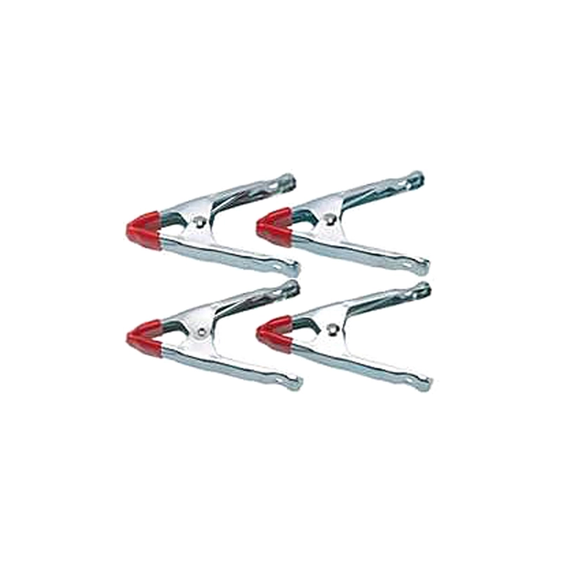 Set 4 pezzi, in acciaio zincato, ganasce ricoperte in plastica. Apertura ganasce 30 mm, lunghezza 100 mm.