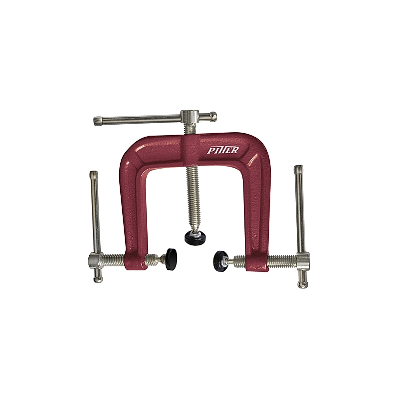 Strettoi per bordi in ghisa con tre punti di serraggio. Apertura massima cm 6,5x6,5. Peso Kg 0,45.