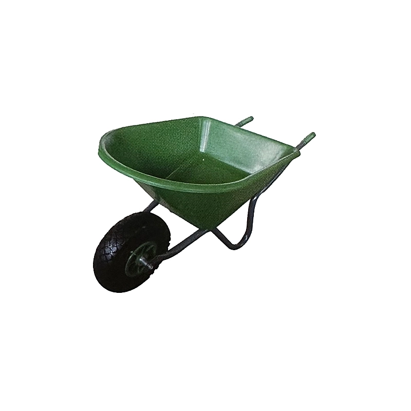 Carriola da bambino con vasca in plastica da 25 lt. Telaio in acciaio verniciato, ruota morbida piena antiforo. Colore verde.