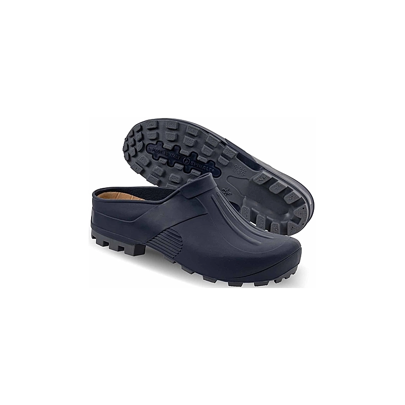 Sandalo da giardino con impronta antiscivolo. In gomma termoplastica che assicura un grip perfetto sul bagnato e sulle superfici ghiacciate. Soletta estraibile in microfibra. Colore blu. Modello = taglia