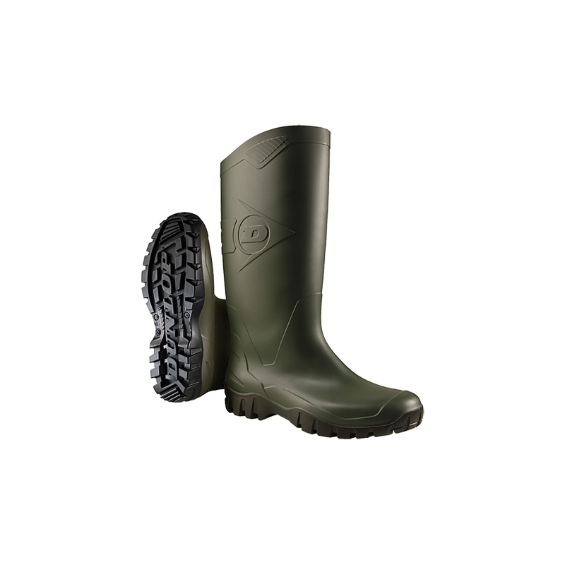 Stivali ginocchio professionali Dunlop Dane, in PVC con interno in poliestere e suola a carroarmato. Colore verde. NORMATIVA: EN ISO 20345:2011. Modello = taglia