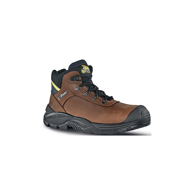 Tomaia in pelle PULL-UP idrorepellente. Fodera a tunnel d'aria traspirante. Lamina ergonomica in acciaio antiforo. Puntale in composite con membrana traspirante. Suola PU antiolio, antiscivolo ed antistatica. Modello = taglia