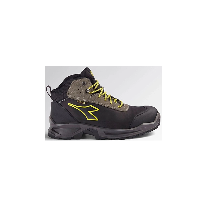 Tomaia in pelle bovina Pull-up Nubuck e pelle bovina scamosciata. Puntale in alluminio 200 J. Inserto antiperforazione K-SOLE. Area della punta e del tallone con rinforzo antiabrasione. Membrana impermeabile DIA-tex. Isolamento dal freddo. Fodera in Air Mesh. Plantare estraibile microforato in PU espanso a celle aperte, traspirante con carboni attivi. Modello = taglia