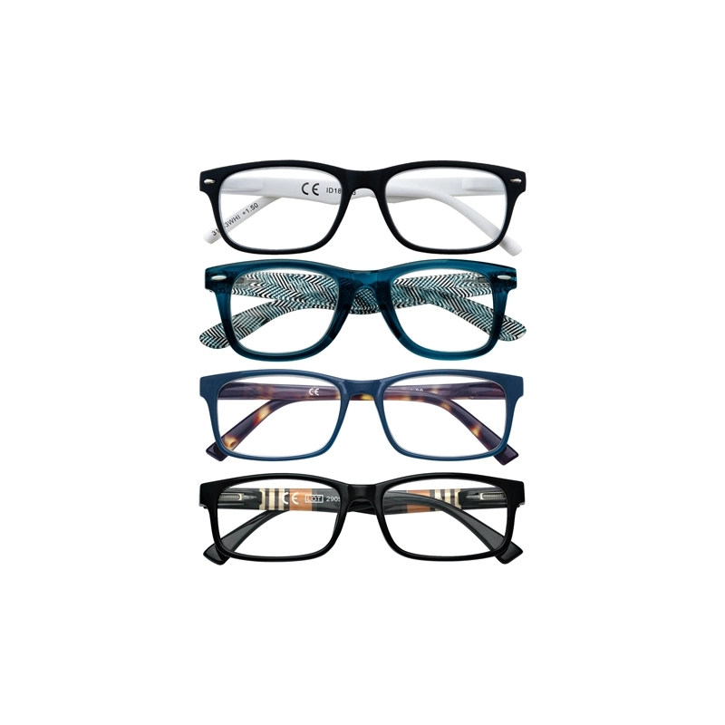 Occhiali da lettura conformi UE 2017/745. Aste con molla sistema flex. Confezione da 4 pz. Modelli assortiti tra B3-B16-B20-B25 dei colori piu' venduti. Modello = correzione diottrie